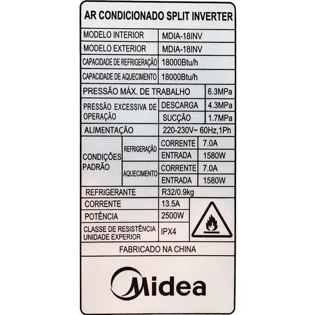 Ar Condicionado Split Midea 18000BTU 220V/60Hz Quente/Frio MDIA-18INV - Inverter/Wi-Fi
